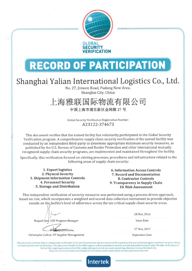 - 上海雅聯(lián)國際物流有限公司